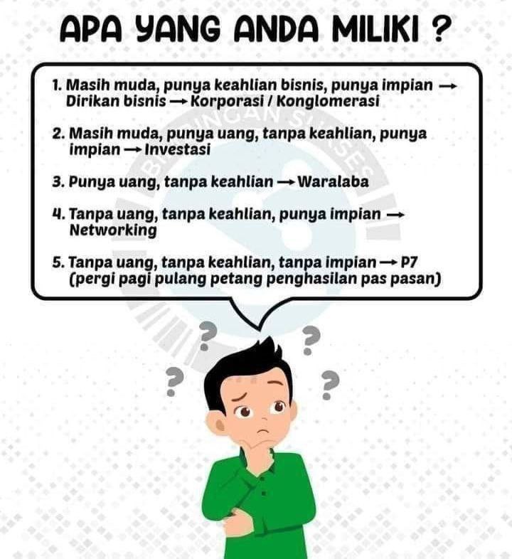 Orang miskin mencari pekerjaan, orang  (yang akhirnya bisa) kaya membangun jaringan. Jaringan apa yang dibangun tergantung dari apa yang kita miliki.